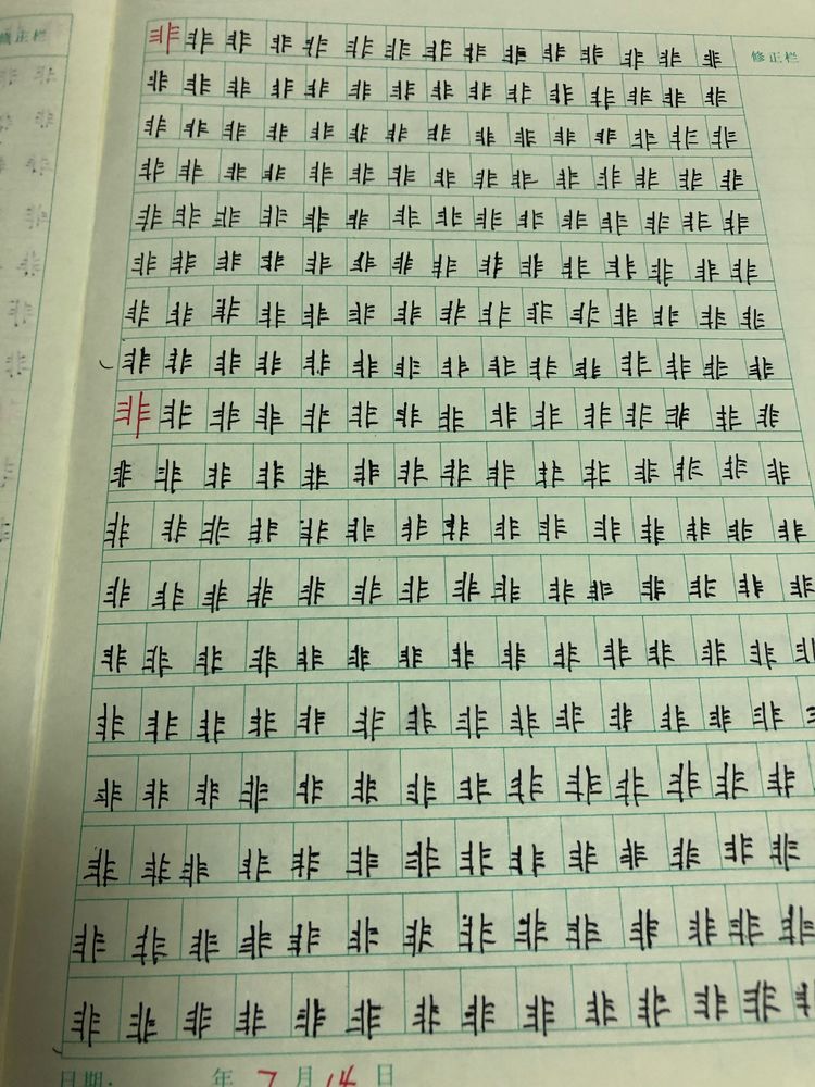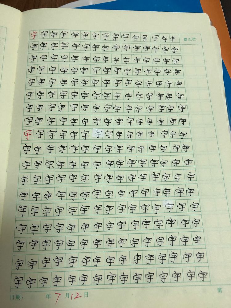 除了字帖作业外,刘宇非同学自我安排的练字……