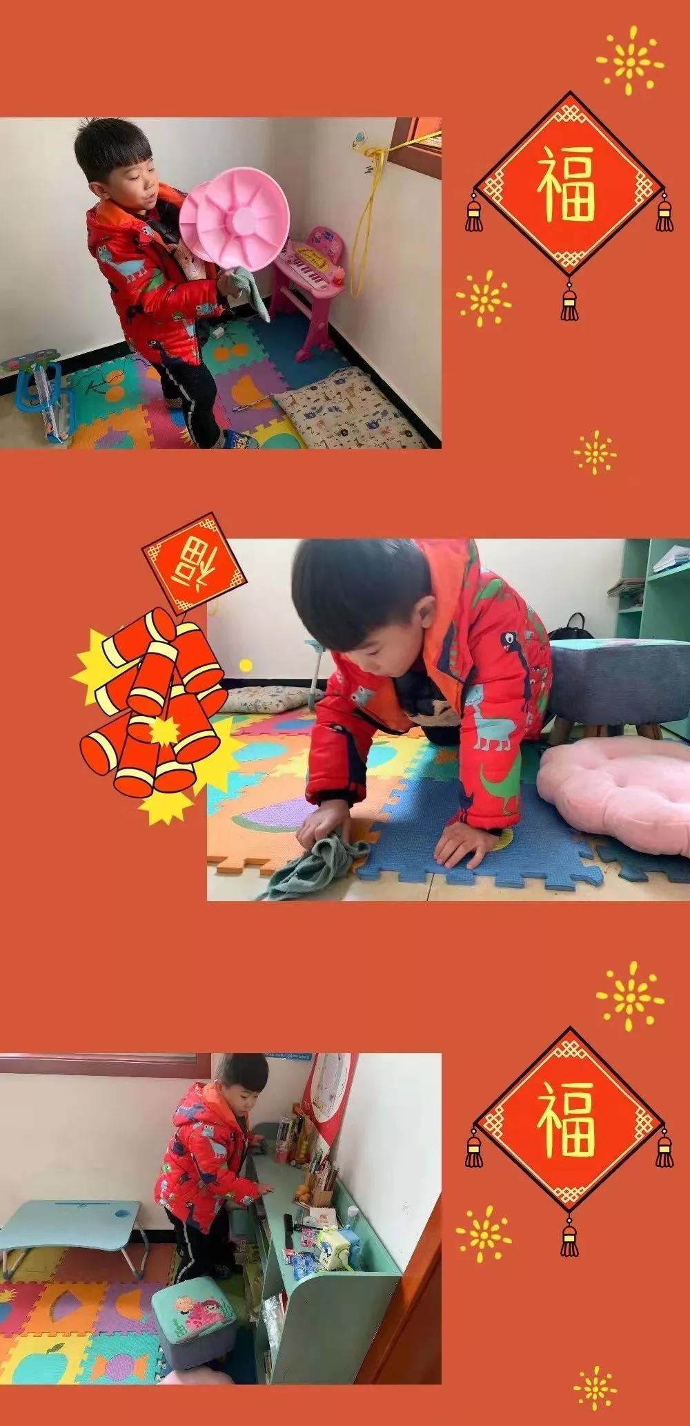 一群小“清洁工”协助家人一起打扫卫生,有的变成“长臂猿”把窗户擦得亮亮堂堂,有的拿起长长的拖把把地拖得干干净净......孩子们的辛勤劳动,使家里整洁明亮。