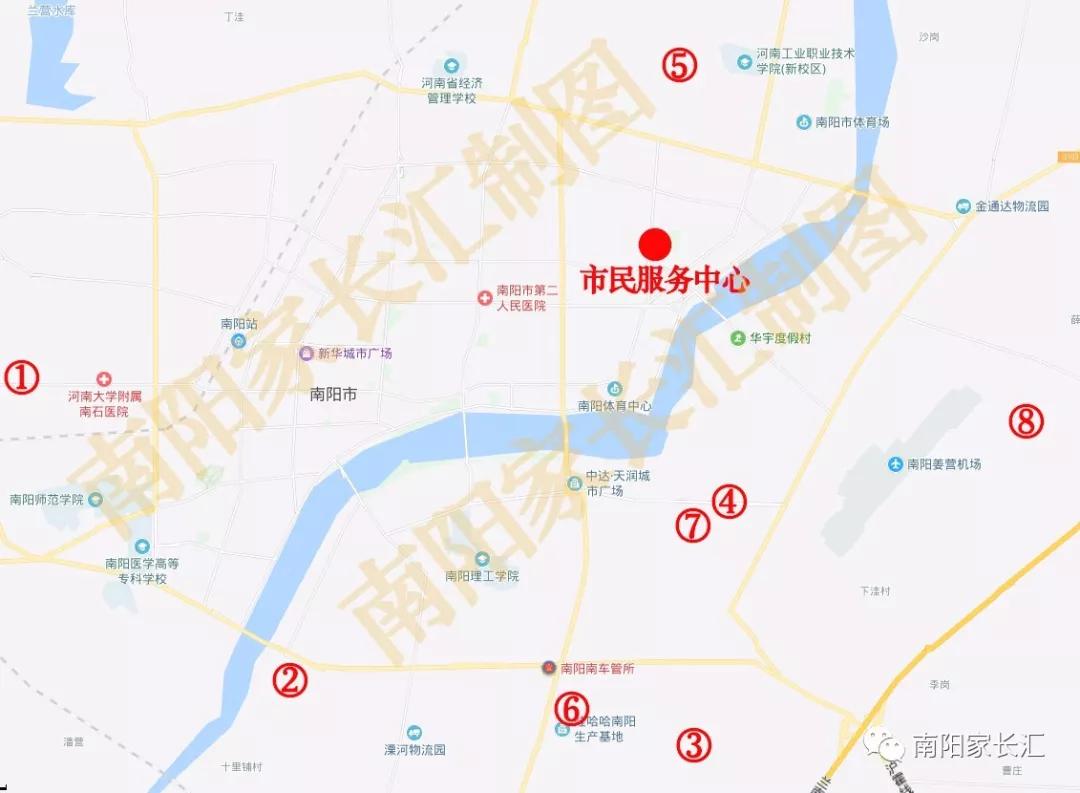 南阳市第八完全学校位置(示范区):月季园以南、李高路与东外环路交叉口西南角,狮子庄处(机场东北角与高铁站之间。),