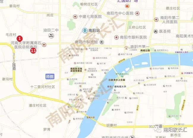 南阳市第十一完全学校路线:从南石医院西侧的许庄路口向南,村庄南侧。