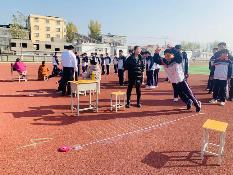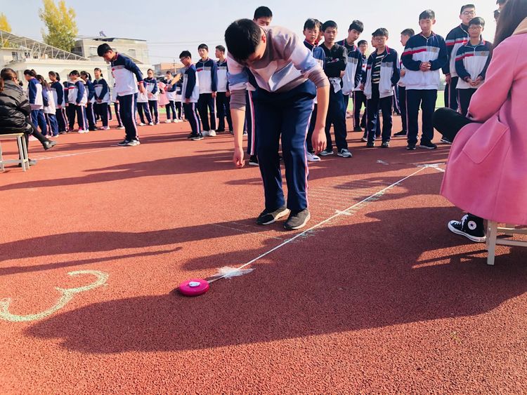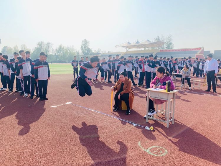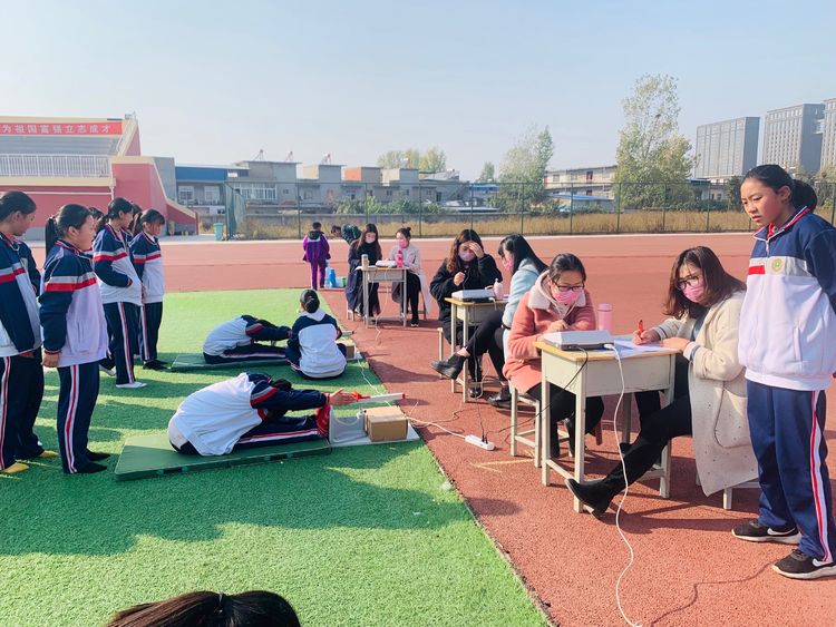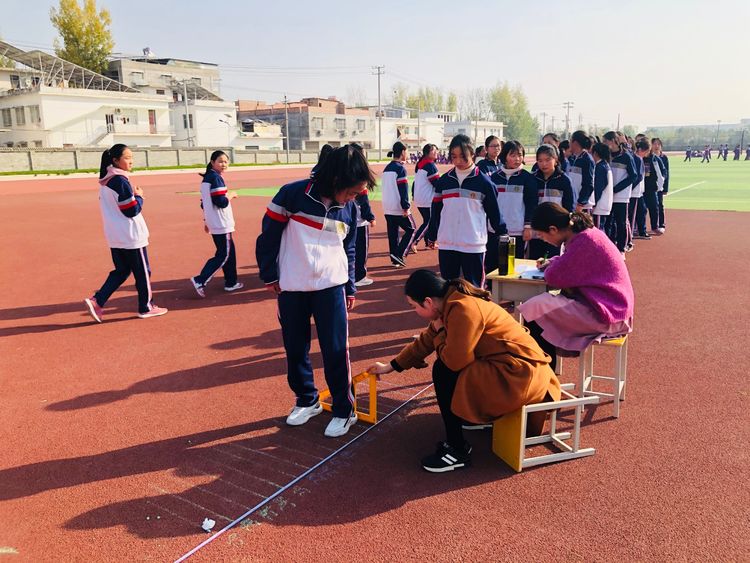 初三年级的班主任老师、任课老师及体育组的老师们主动承担了裁判员的工作,一方面帮助同学们记录成绩,另一方面为测试的同学们加油鼓劲。