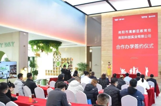 12月28日上午,南阳市高新区教育局与南阳科创实业有限公司合作办学签约仪式在吾悦广场&南都玉麓营销中心隆重举行。
