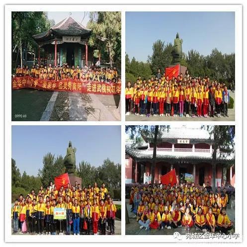 为落实《教育部等11部门关于推进中小学生研学旅行的意见》等省市文件精神,以实际行动践行社会主义核心价值观。2019年10月29日,宛城区金华中心小学开启了武侯祠、汉画馆、归零文化村“爱家乡 品灵秀南阳”研学之旅。此次活动主要包括了解南阳卧龙岗武侯祠——走近“智圣”诸葛亮、学习汉画相关知识、自制手工皂、小中医体验、草木扎染等。