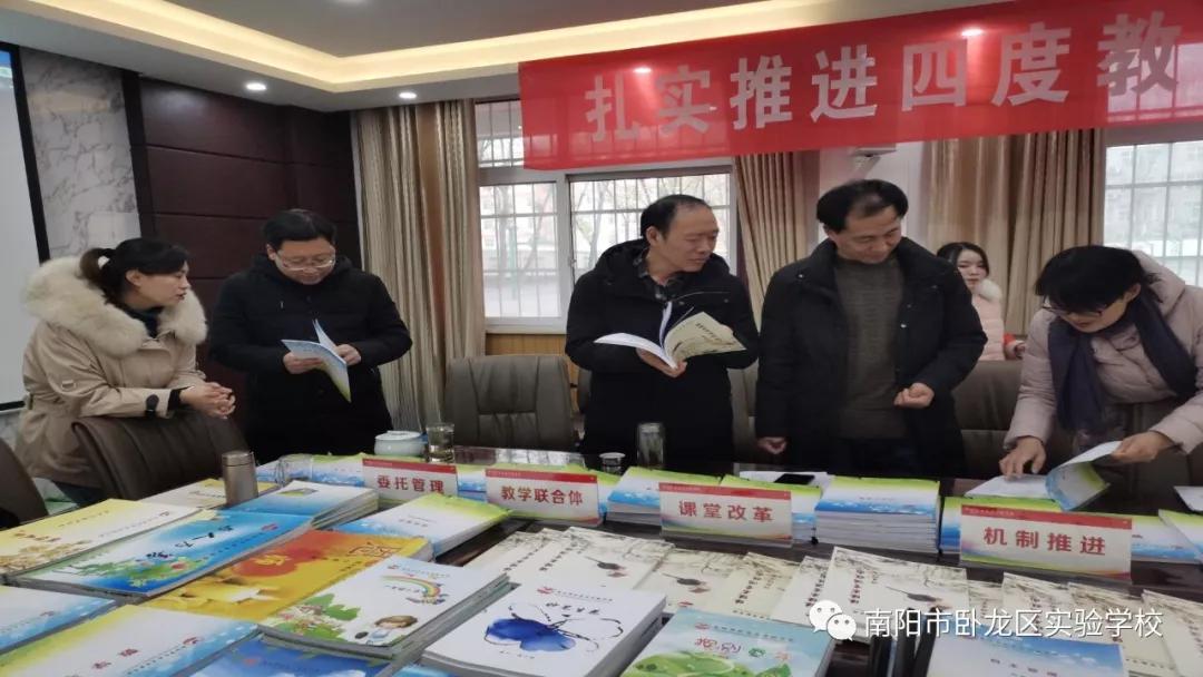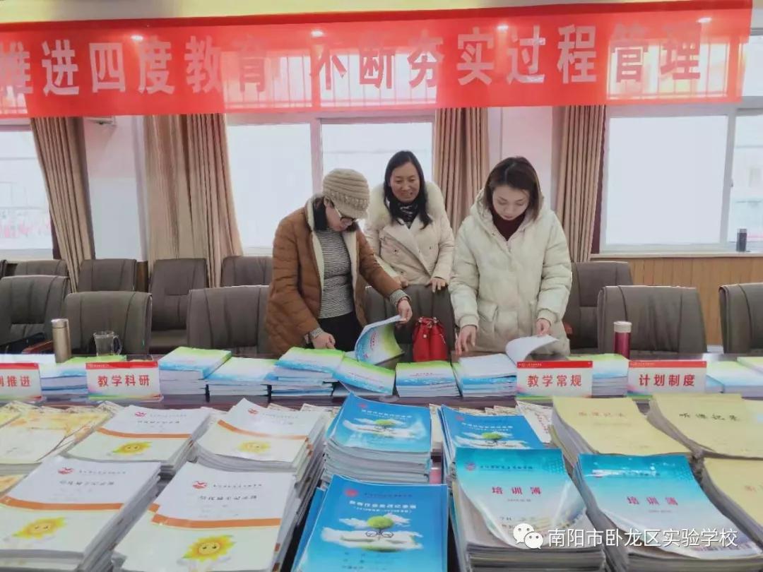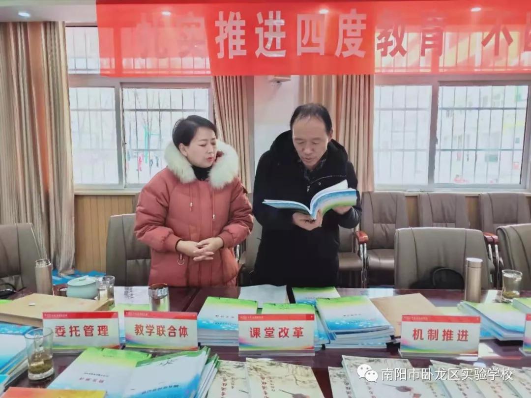 为了继续深入学习贯彻“四度”教育精神,让“四度”教育落实在每一个老师的心中;为更进一步规范和促进教学教研工作,创建积极的教学教研氛围,大力提高教育教学质量,12月19日上午卧龙区检查组在组长高景春主任、副组长陈祖武主任的带领下,评委谢照耀、孙奇、杨喜民、王文姣一行来到卧龙区实验学校进行了本学期教学常规工作的大检查。