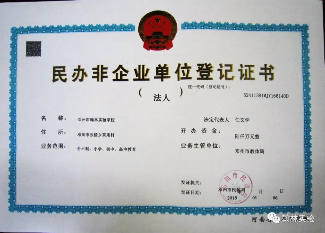 翰林实验学校办学许可证 编号:2016 0103268