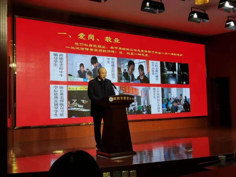 南阳市二十一中沈扬校长用暖心的话语致敬了二十一中可敬的教师团队。他表示:这是一支敢担当、乐奉献、团结奋进的团队!全体教师爱岗敬业,只要学校有要求,克服困难也要做到最好;舍小家为大家,不计个人得失,全身心投入在工作中。态度决定一切,今后的工作中,二十一中全体教师要在“三个三,六个做到”的引领下,凝聚在一起,荣校修身,笃学致远,立足新起点,创造新辉煌!