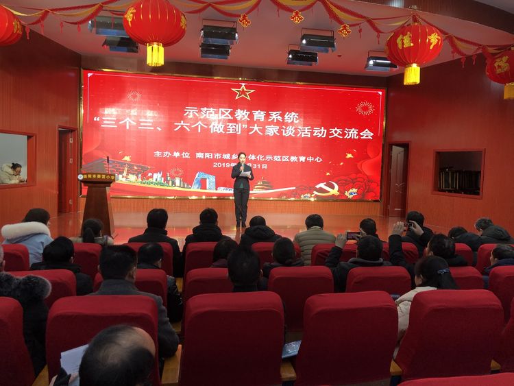 2019年12月31日上午,经过示范区教育中心的精心组织,在姜营小学召开了示范区教育系统“三个三、六个做到”大家谈活动校级领导交流会。与会的领导有南阳市城乡一体化示范区示范区教育中心万旭主任,李良斌书记以及全区40余位校长。会议由姜营小学龙洋老师主持。