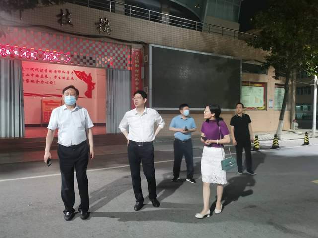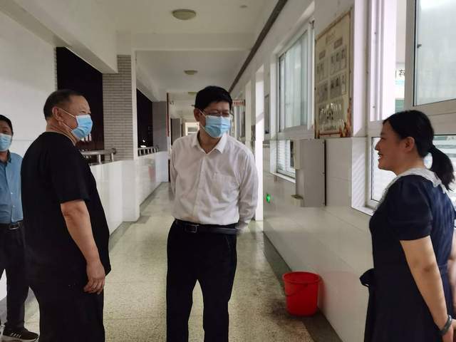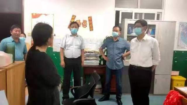 当日20:10,高温闷热,杨文普首先来到南阳市五中。由于事先没有通知,进不去校门,正在和老师谈话的校长王超、副校长王书勤下楼赶到,才按防疫规定得以通行。杨文普首先对五中校园疫情防控工作提出表扬,杨文普说,我们必须在校园疫情防控的大考中得满分,才能保证全市的学生在高考中少失分,两张答卷都必须答好!杨文普一行轻声慢步,边走边看,先后深入高三教师备课室、教室,看到老师们坚守岗位,认真组题;教室内秩序井然,学生们埋头做题。杨文普每到一处,详细询问师生们考前如何复习?晚上几点睡觉?睡眠好不好?饭菜质量如何?能不能吃好?师生们很受感动,一一作答。认真听了师生们的回答,看到师生们饱满的备考状态和良好的精神面貌,杨文普感到很欣慰。当杨文普走进五楼教师休息室,看到还有一名小学生,当得知孩子的爸爸常年在外地工作,而孩子的妈妈杨丹老师作为班主任正坚守在教室时,杨文普颇为感动,特别向杨丹老师表示亲切慰问和衷心感谢。随后,杨文普又来到学生公寓,察看学生的住宿环境,并对学校公寓的管理水平给予了高度评价,提出了中肯意见。他告诉校长王超,要为师生们提供有营养高质量的饭菜,让师生们吃好;为师生们制订科学的作息表,保证睡眠时间,对寝室教室空调制冷效果再排查,高考在即,既要吃好,更要睡好,只有吃好睡好,才能更好应战,考出好成绩。