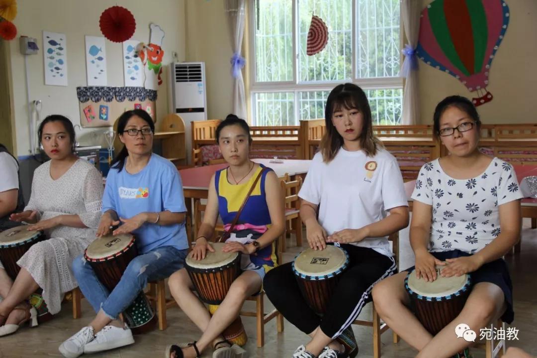 第四部分由业务骨干董莉老师为全体教师进行非洲鼓实际教学培训,从教学对象、节奏把握及运用等多个方面为大家做了详细的讲解。